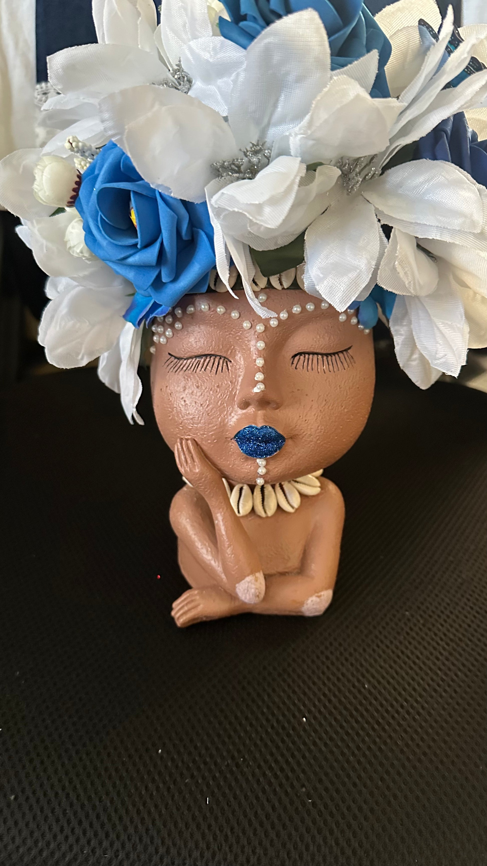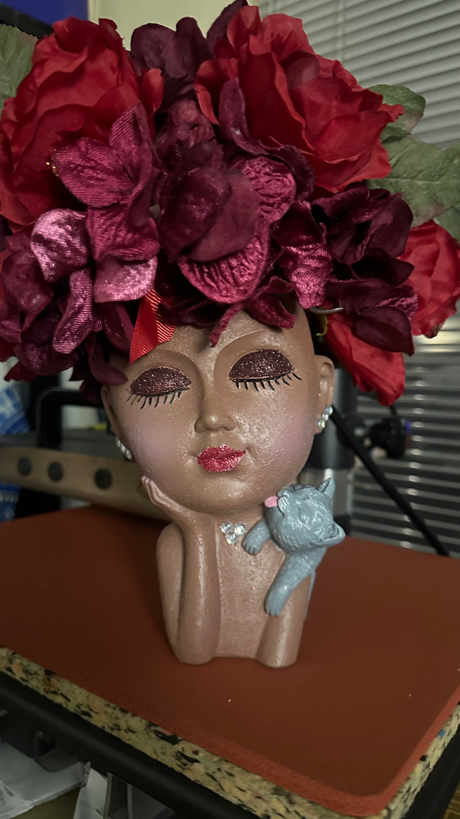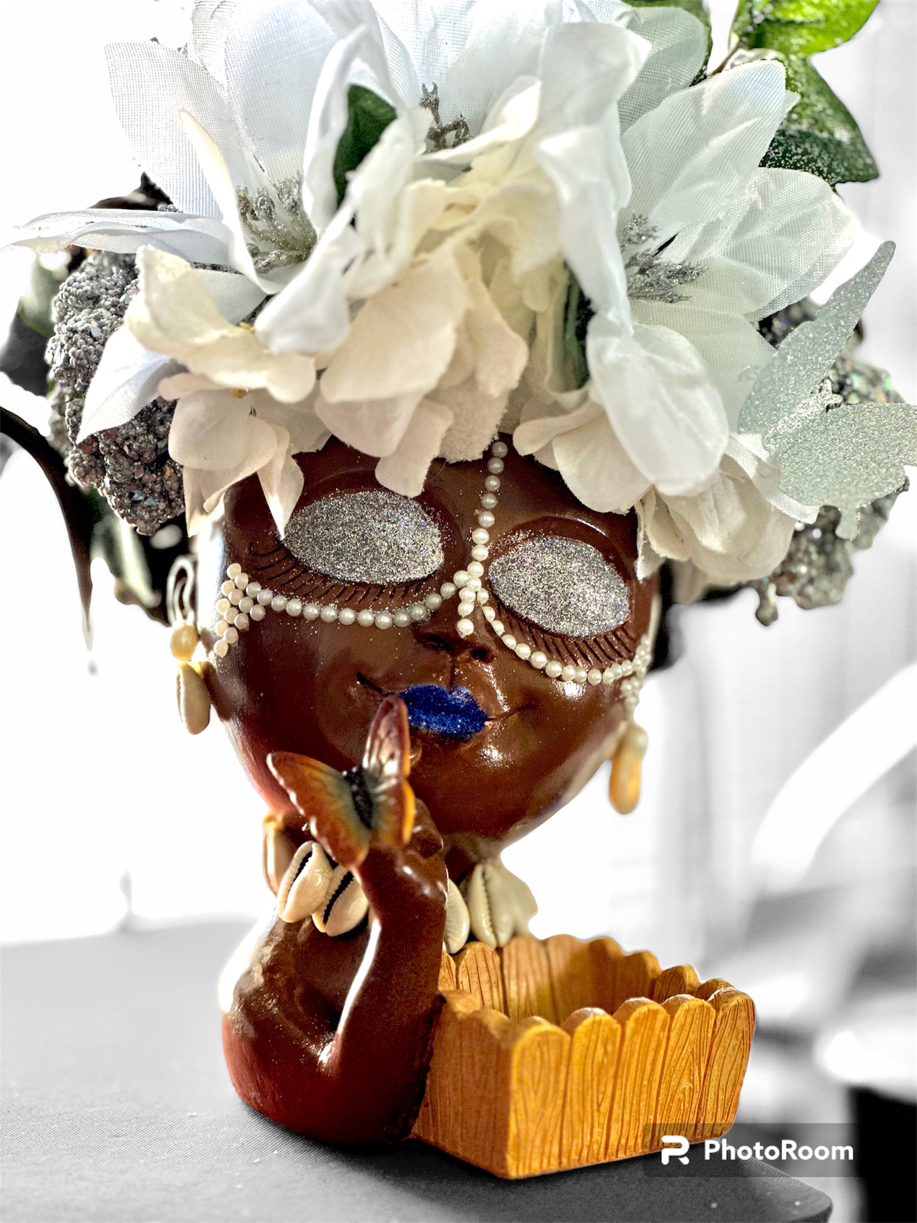 Unique planter doll heads are transformed into works of art. They can be used as table decoration, book ends, desk accessory, or just to look pretty in your windows.